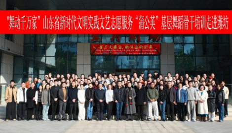 11月13日,由山東省文學(xué)藝術(shù)界聯(lián)合會(huì),山東省舞蹈家協(xié)會(huì)主辦,濰坊市文學(xué)藝術(shù)界聯(lián)合會(huì),濰坊市文化館,濰坊市文藝志愿者協(xié)會(huì),濰坊市舞蹈家協(xié)會(huì)共同承辦,濰坊市奎文區(qū)文學(xué)藝術(shù)界聯(lián)合會(huì)、濰坊市奎文區(qū)文化館協(xié)辦的 “舞動(dòng)千萬家”山東省新時(shí)代文明實(shí)踐 文藝志愿服務(wù)“蒲公英”基層舞蹈骨干培訓(xùn)活動(dòng)在奎文區(qū)文化館隆重開幕。