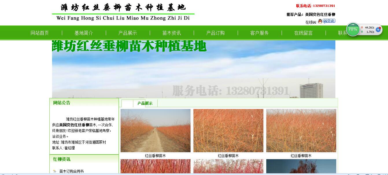 濰坊紅絲垂柳苗木種植基地位于美麗的世界風(fēng)箏都濰坊,這里人杰地靈,交通便利,基地秉承誠信經(jīng)營、信譽(yù)為本的發(fā)展理念,大力拓展銷售市場,經(jīng)過幾年的不懈努力,規(guī)模不斷發(fā)展壯大,并取得了良好的社會信譽(yù)!我基地培育的美國變色紅絲垂柳,是剛剛進(jìn)入國內(nèi)的一種美化環(huán)境新型垂柳品種。該品種主干和側(cè)枝金黃色,垂絲鮮紅色,主干性強(qiáng),垂性好,垂絲密而細(xì)長,深綠色葉片最長可達(dá)3米多,平展光亮;夏季和秋季寬長光亮的葉片襯托著條條垂地的枝條,一眼望去就像一道道高高的綠籬形態(tài)奇美壯觀;冬季和春季觀賞雙色垂柳效果更佳,一顆顆金黃的樹體長長鮮紅的垂絲,被風(fēng)一吹,千條紅絲來回?fù)u擺,宛如紅發(fā)少女翩翩起舞,婀娜多姿,充分體現(xiàn)出百分桃花千萬柳,冶紅嬌翠畫江南的景觀效果,是具有以后美化神州大地極高價值的綠化苗木之一;因此,變色紅絲垂柳是美化公園、別墅、街道、路旁等高檔雙彩色樹種?;卣嫉孛娣e三百余畝,垂柳長勢良好,并特聘專家教授進(jìn)行技術(shù)指導(dǎo),垂柳生長旺盛,質(zhì)量可靠,信譽(yù)第一,熱忱歡迎社會各界朋友來人來函選購!
